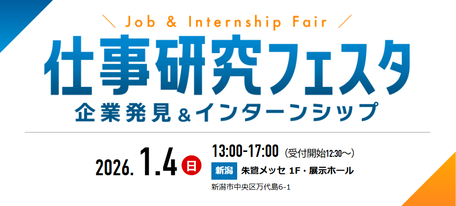令和8年1月4日(日)に朱鷺メッセで開催される合同企業説明会『仕事研究フェスタ』に参加します。