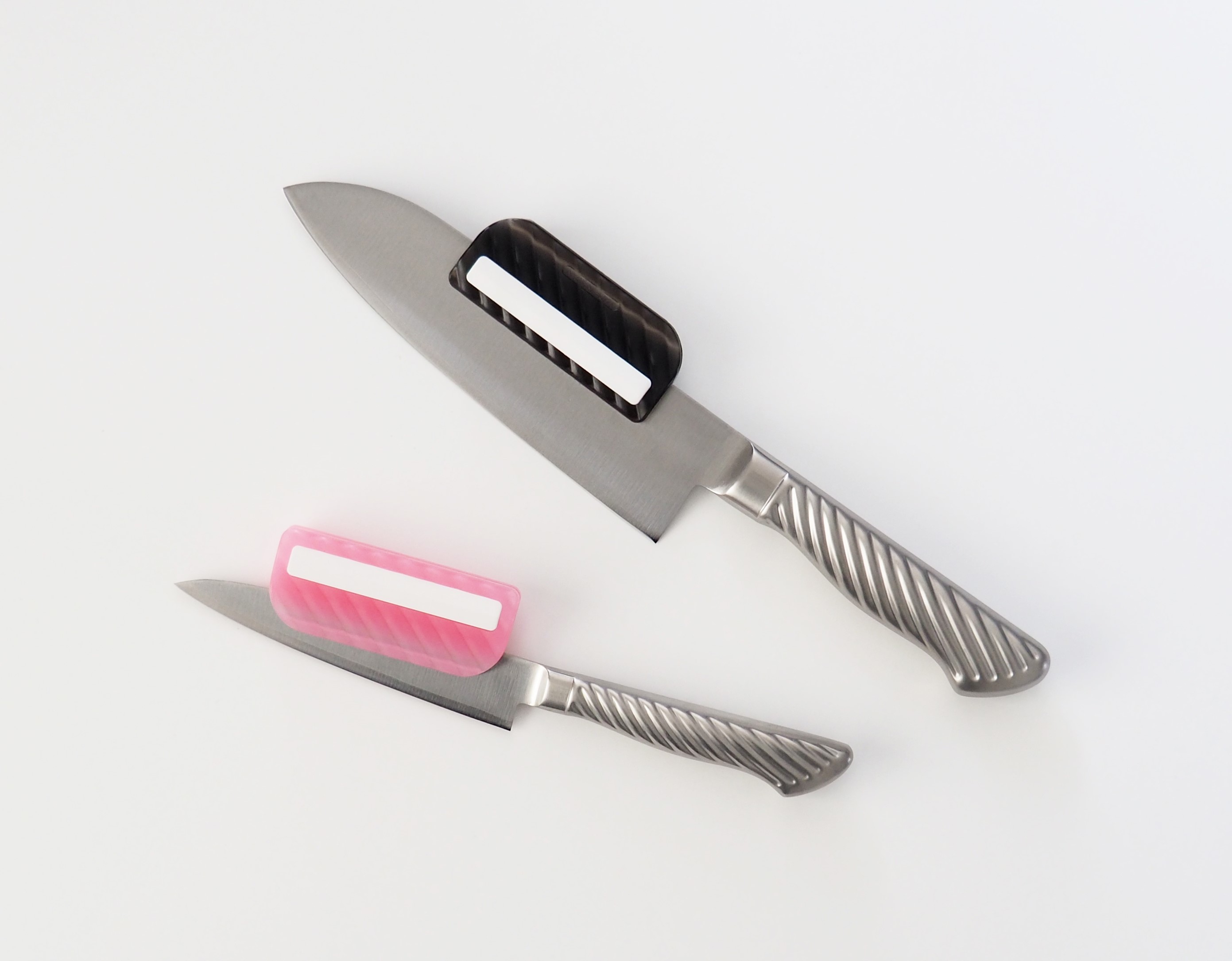 ※三徳や牛刀、ペティナイフ等の両刃包丁専用です。出刃や柳刃等の片刃包丁には対応しておりません。※包丁に取付け跡が残る場合があります。跡が残ることを避けたい場合はご使用をお控えください。