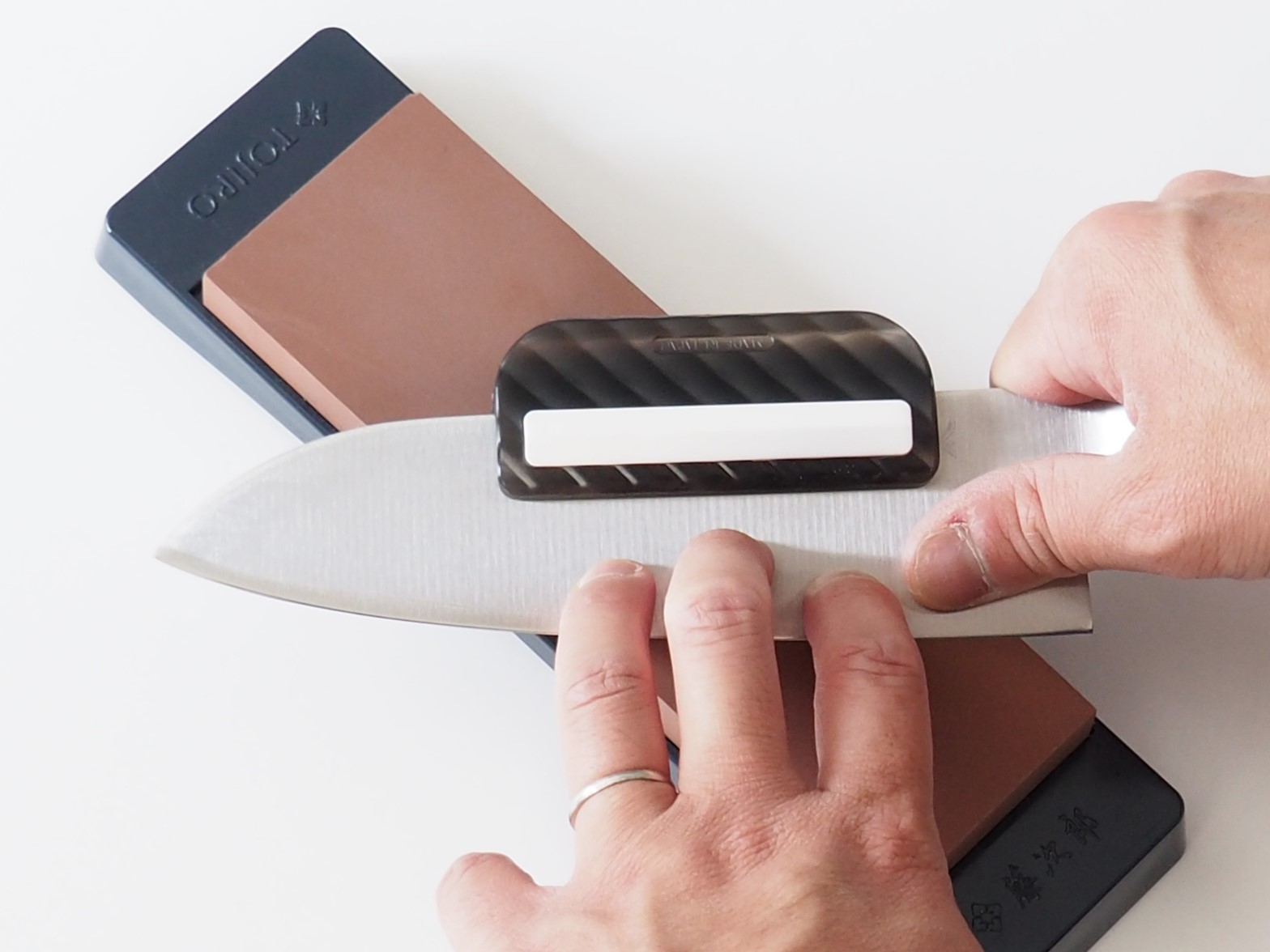 包丁に取り付けるだけで、誰でも簡単に、適切な角度で刃を砥石に当てて研ぐことができます。小型から大型まで、様々なサイズの包丁に取り付け可能です。精度の高い日本製セラミックを採用しており、耐摩耗性に優れ、研ぎの安定感が持続します。