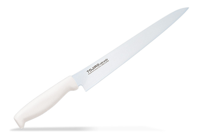 刀身には耐摩耗性に優れサビに強いモリブデンバナジウム鋼を採用。ハガネ製のものに比べてお手入れしやすく、はじめての方にも扱いやすい和庖丁です。藤次郎の職人が丁寧に刃付けを施しており、切れ味に妥協はありません。ハンドルには耐水性に優れ手触りの優しい朴木を使用しています。