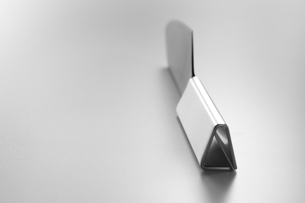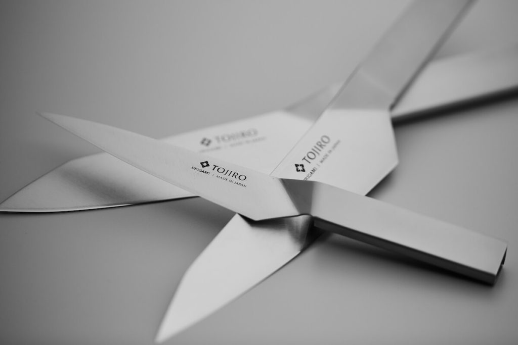 ステンレス材を「折り紙」のように折り曲げて形づくったオールステンレスナイフです。溶接を行わないことで金属の性質劣化を回避しています。世界的に権威のある工業デザイン賞「iFデザイン賞」においてプロダクトデザイン賞を受賞。キッチンでスタイリッシュに映える斬新なデザインです。(ハンドルの内部を洗浄するためのブラシが付属)