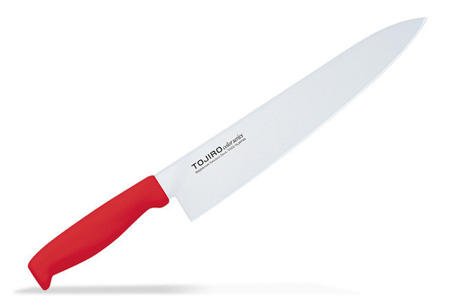 刀身には耐摩耗性に優れサビに強いモリブデンバナジウム鋼を採用。ハガネ製のものに比べてお手入れしやすく、はじめての方にも扱いやすい和庖丁です。藤次郎の職人が丁寧に刃付けを施しており、切れ味に妥協はありません。ハンドルには耐水性に優れ手触りの優しい朴木を使用しています。