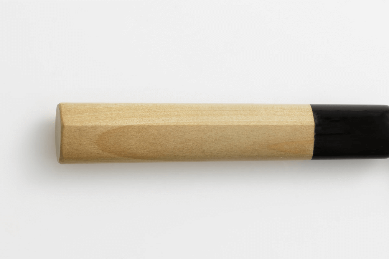 刀身には耐摩耗性に優れサビに強いモリブデンバナジウム鋼を採用。ハガネ製のものに比べてお手入れしやすく、はじめての方にも扱いやすい和庖丁です。藤次郎の職人が丁寧に刃付けを施しており、切れ味に妥協はありません。ハンドルには耐水性に優れ手触りの優しい朴木を使用しています。