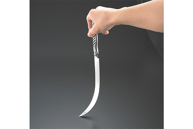 フランス料理文化センター監修のもと開発されたサーヴィス専用ナイフです。刀身には耐摩耗性に優れサビに強いモリブデンバナジウム鋼を採用。しなりの良いフレキシブル加工が施されています。サーヴィス独特の握り方に対応した特殊形状ハンドルが最高のパフォーマンスをサポートします。さらに、トルネード模様を施すことにより水や油の付いた手でも滑りにくく、快適に調理することができます。