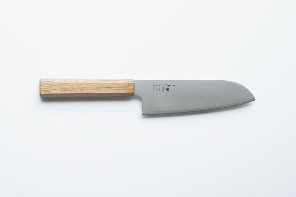 心材にV金10号(VG10)を使用し、側材に13クロームステンレス鋼を複合することにより、高い切れ味とお手入れの手軽さを両立しています。表面はブラスト処理を施し、光沢感を抑え、マットで柔らかな質感に仕上げています。
